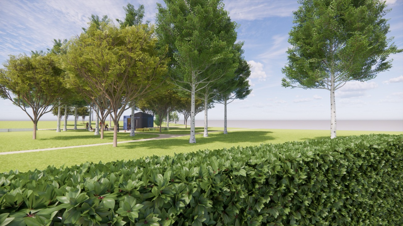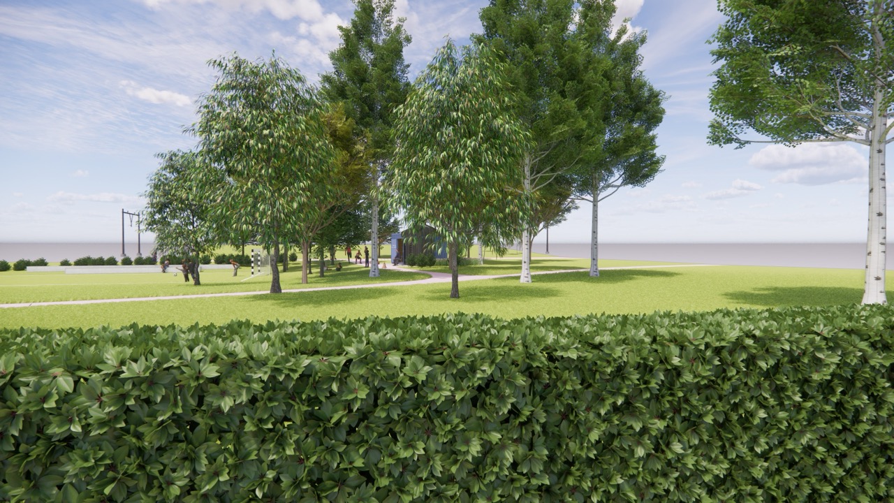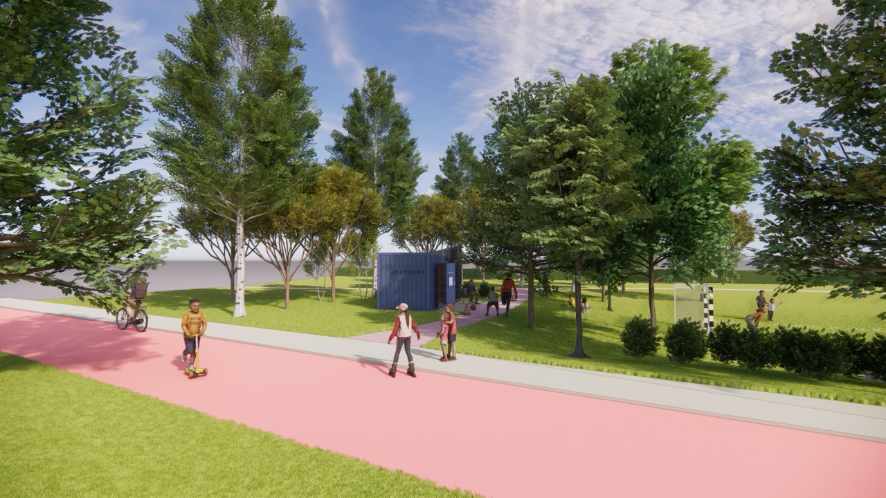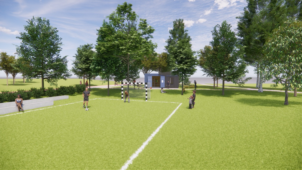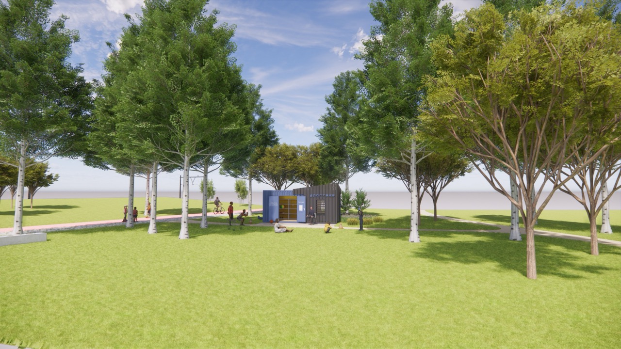 Het idee hierbij is een gebouwtje in het park waarin sport- en spelmaterialen kunnen worden opgeslagen en uitgeleend. Voor en door de buurt. Buurtbewoners kunnen gratis gebruik maken van deze voorziening, bijvoorbeeld voor het lenen van ballen, een volleybalnet, buitenspellen tot het materiaal voor je bootcampklasje uit de wijk. Doordat er een plek is waar je makkelijk wat materialen kan opbergen en ophalen, wordt het makkelijker om activiteiten in het nieuwe park te organiseren.